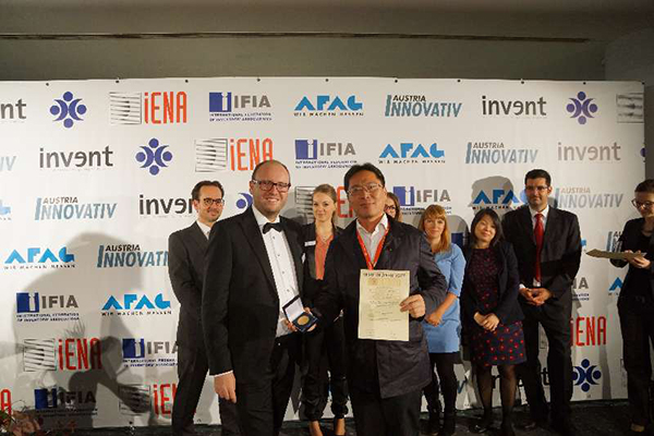 2017年11月2-5日,舉世矚目的第69屆德國(guó)紐倫堡國(guó)際發(fā)明展在德國(guó)紐倫堡國(guó)際展覽館隆重舉行。蕪湖圣美孚科技有限公司董事長(zhǎng)王聯(lián)同志受邀參展,經(jīng)過多輪產(chǎn)品介紹、演示、評(píng)審等環(huán)節(jié)和激烈角逐,我公司多項(xiàng)發(fā)明成果,終在1000多個(gè)參展項(xiàng)目中脫穎而出,榮獲高獎(jiǎng)項(xiàng):德國(guó)紐倫堡國(guó)際發(fā)明展鉆石金獎(jiǎng)(好獎(jiǎng)),為國(guó)爭(zhēng)光。